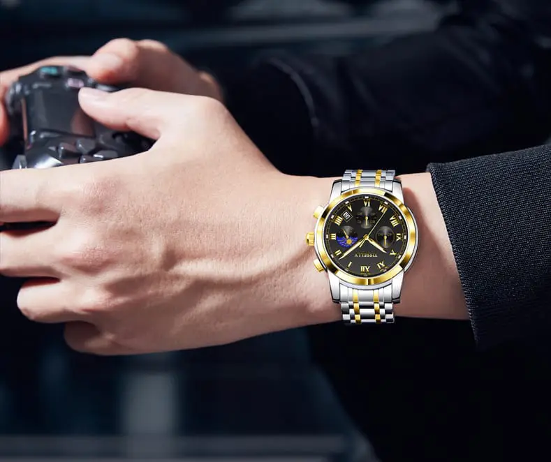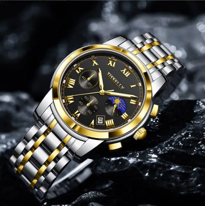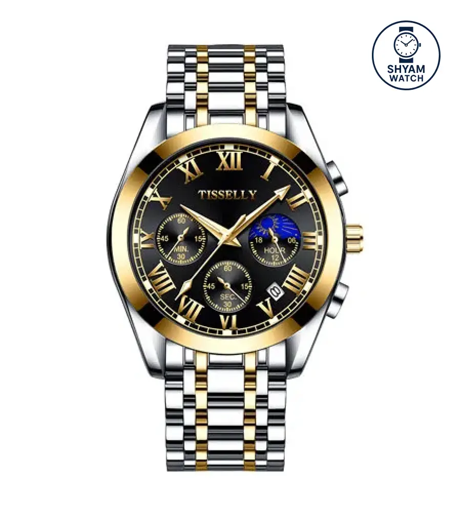 TISSELLY 6619 Elegant two-tone wristwatch with chronograph Quartz Watch Latest Stainless Steel Waterproofing Date Display Simple Classical Casual Watch Design